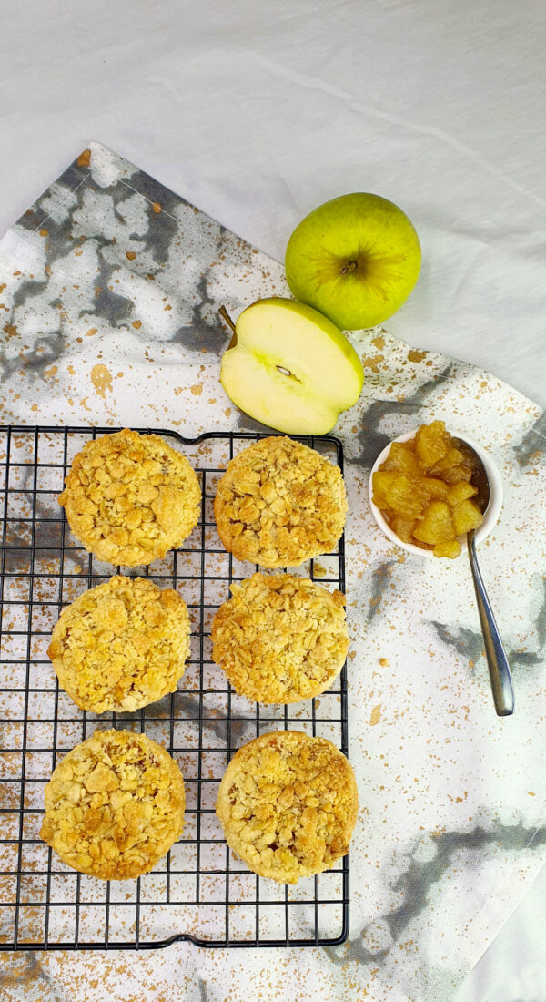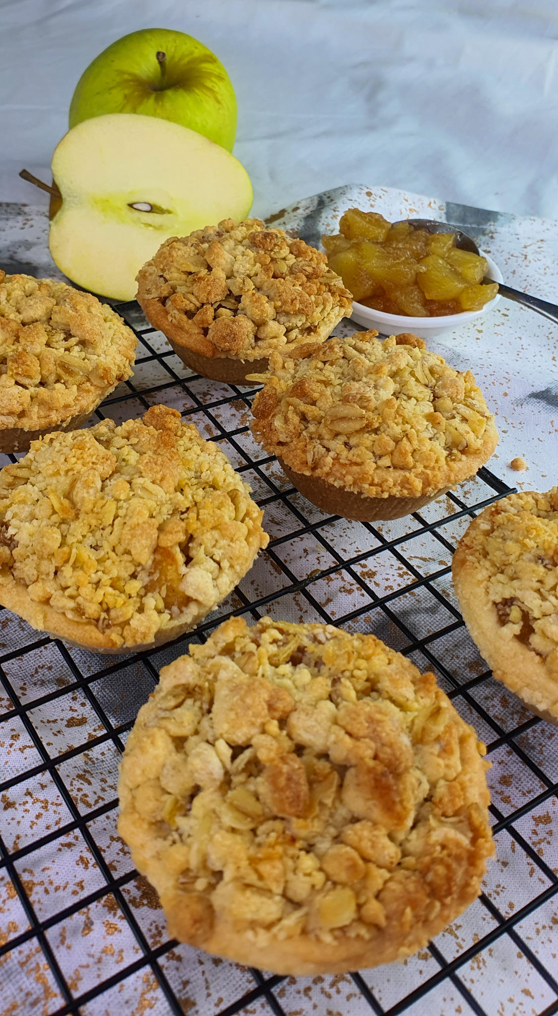 Sweet crust pastry filled with delicious cinnamon apples topped with delectable crumble
